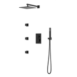 Square Thermostatic Shower Trim Kit with Wall Mount Shower Head, Hand Held Shower, Body Jets
