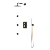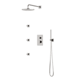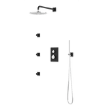 Square + Round Thermostatic Shower Trim Kit with Wall Mount Shower Head, Hand Held Shower, Body Jets