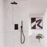 Square + Round Thermostatic Shower Trim Kit with Wall Mount Shower Head, Hand Held Shower
