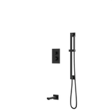 Square + Round Thermostatic Shower Trim Kit with Hand Held Shower on Slide Bar, Tub Filler