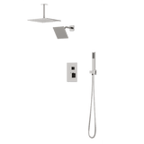 Square Thermostatic Shower Trim Kit with Wall Mount Shower Head, Ceiling Mount Shower Head, Hand Held Shower