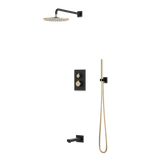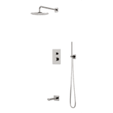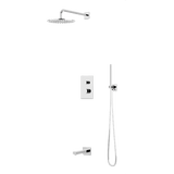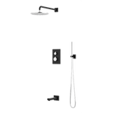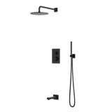 Square + Round Thermostatic Shower Trim Kit with Wall Mount Shower Head, Hand Held Shower, Tub Filler