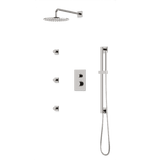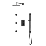 Square + Round Thermostatic Shower Trim Kit with Wall Mount Shower Head, Hand Held Shower on Slide Bar, Body Jets